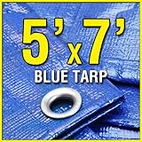 5' X 7' Blue Multi-Purpose 6-mil Waterproof Poly Tarp Boat Cover 5x7 Tarpaulin for Camping Tent Shelter Shade